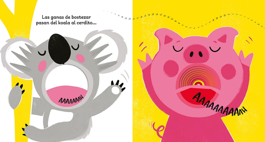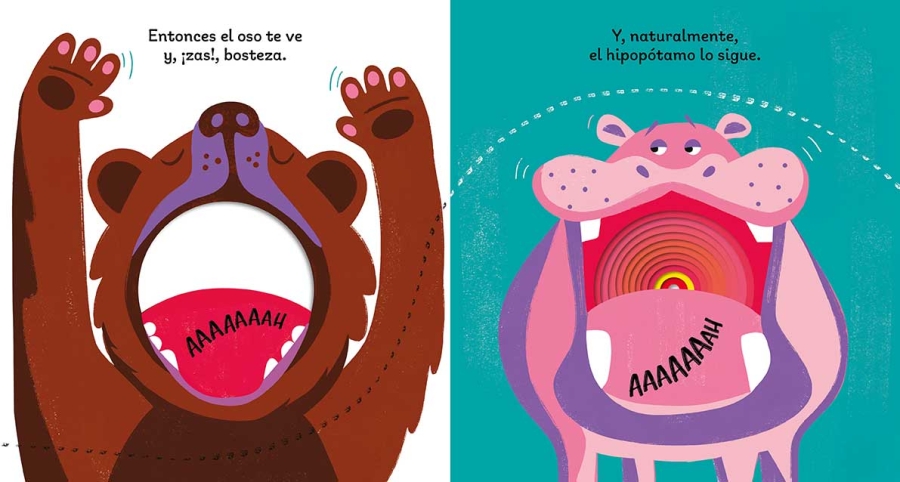¿Sabías que bostezar es contagioso? Cuando el león bosteza, ¡nadie puede resistirse! El oso, el hipopótamo, el tigre, el koala, el cerdo, el gato…