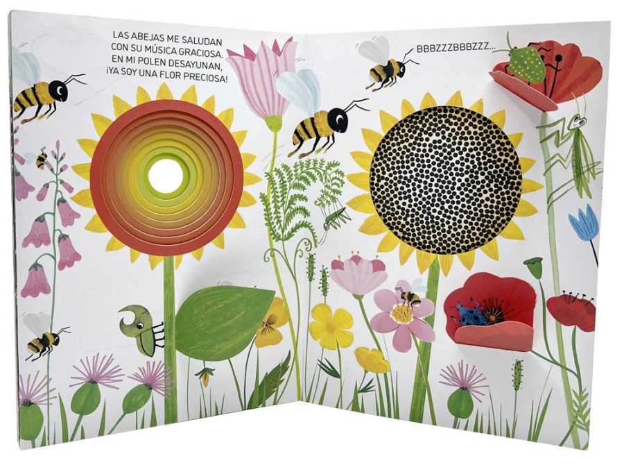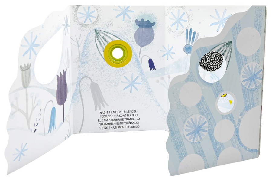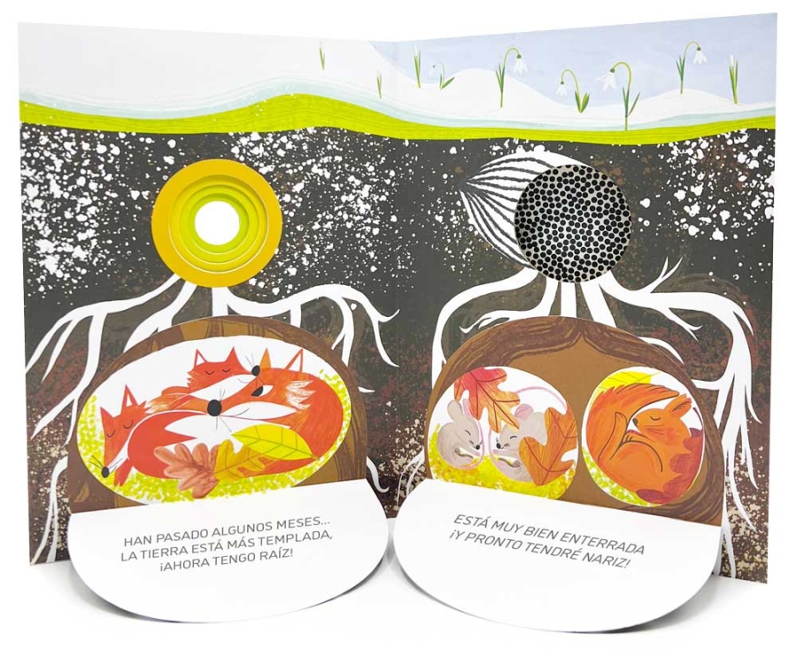 Con un texto ingeniosamente rítmico y rimado, este álbum nos muestra el viaje de una semillita llevada por el viento hasta que se convierte en una bella flor. Siguiéndola, conoceremos su evolución mientras levantando solapas, descubrimos animalitos que guardan comida para el invierno, otros que ya hibernan, las raíces que crecen bajo la tierra, la naturaleza que despierta, la flor que se despliega y que pronto tendrá semillas…