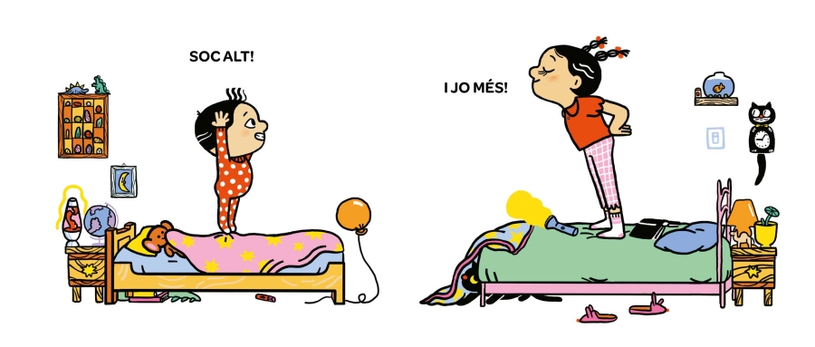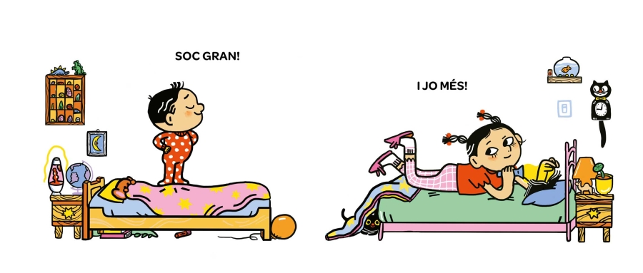 Soc gran», diu el germà petit. «I jo encara més», respon la seva germana. «Soc alt». «No tan alt com jo».